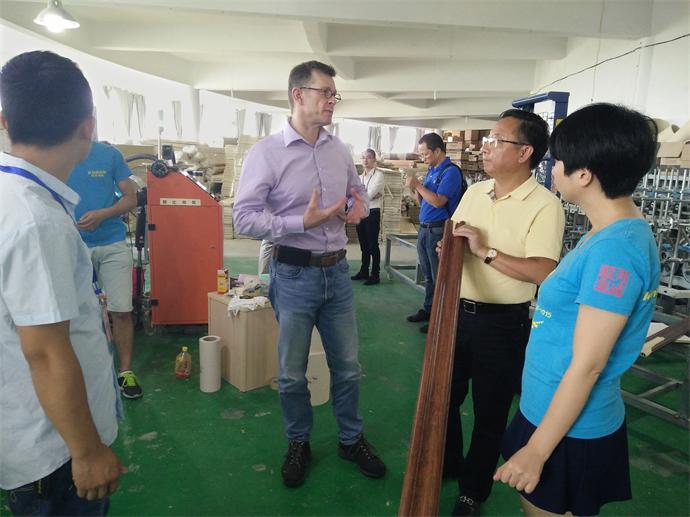 德國KLEIBERIT工程師Holger博士來我們公司與我們聯邦尚品道集成墻面研發團隊一道探討關于產品在我們NGBS執行標準下的適應性、粘合表現和工藝改進及新技術的試用