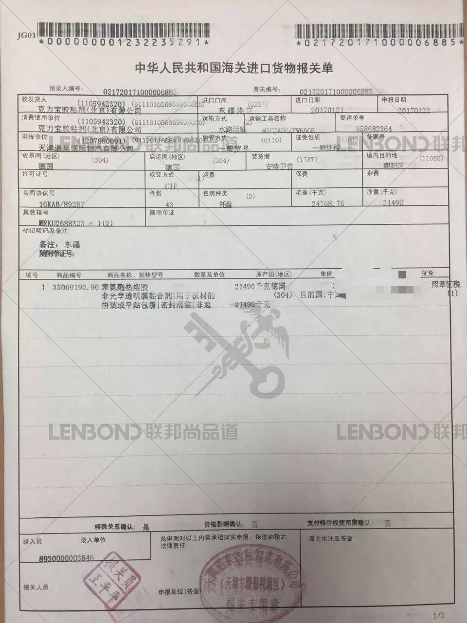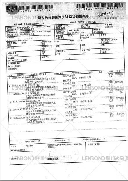 德國原裝進口KLEIBERIT(克力寶)報關單